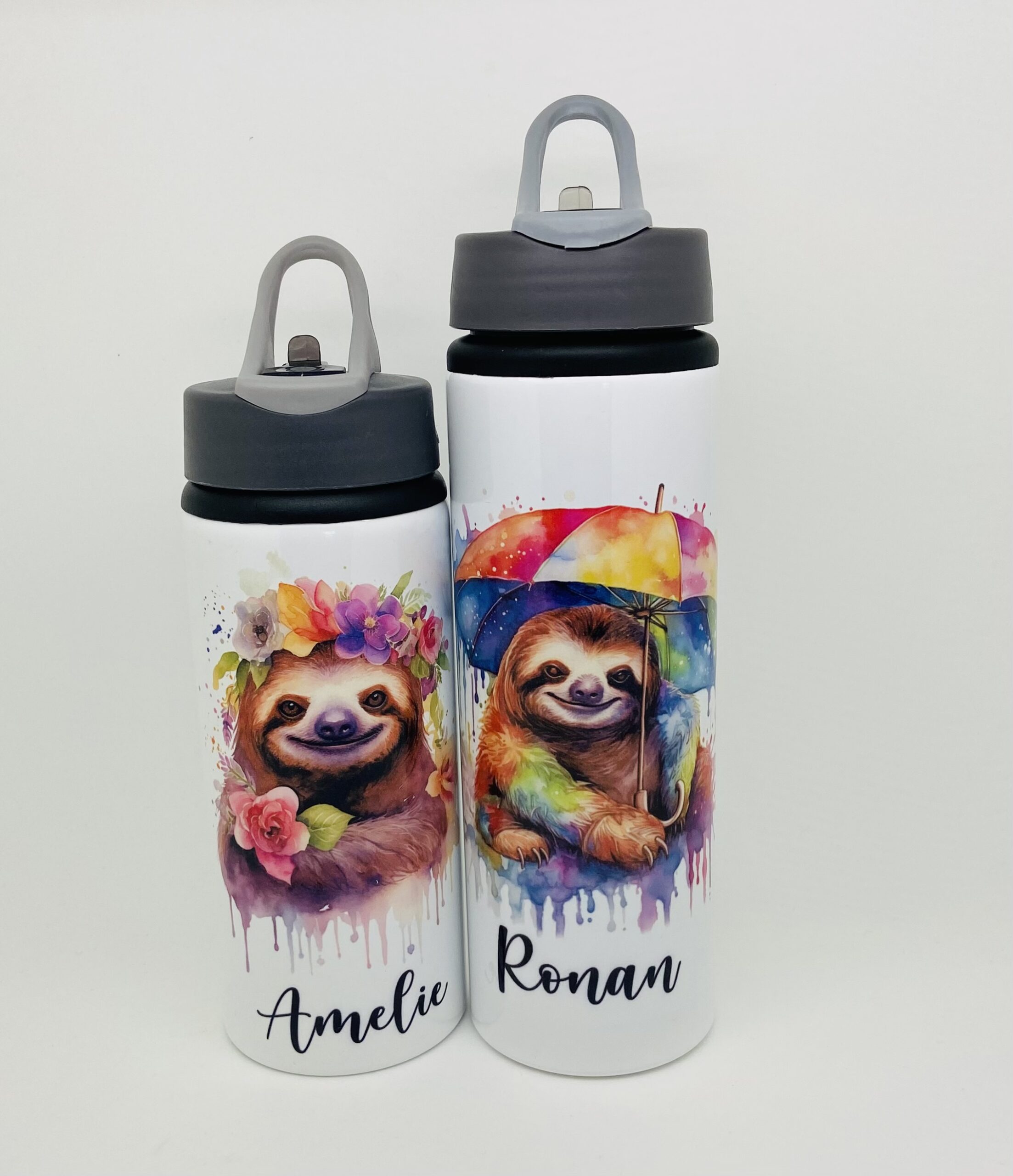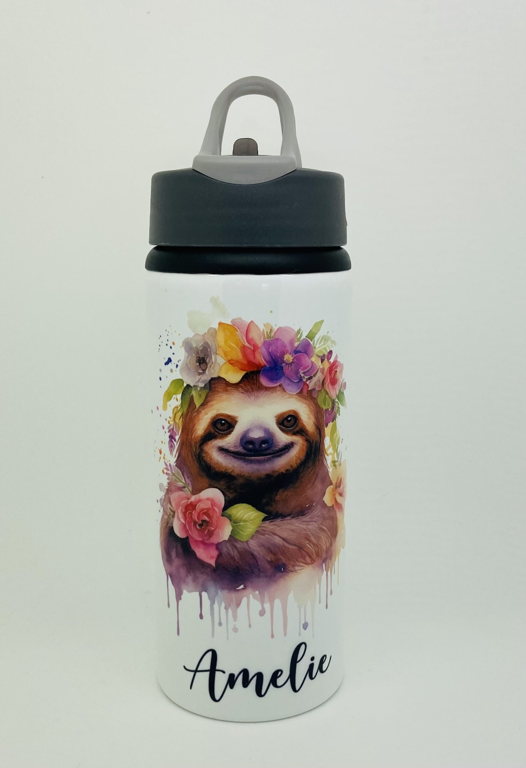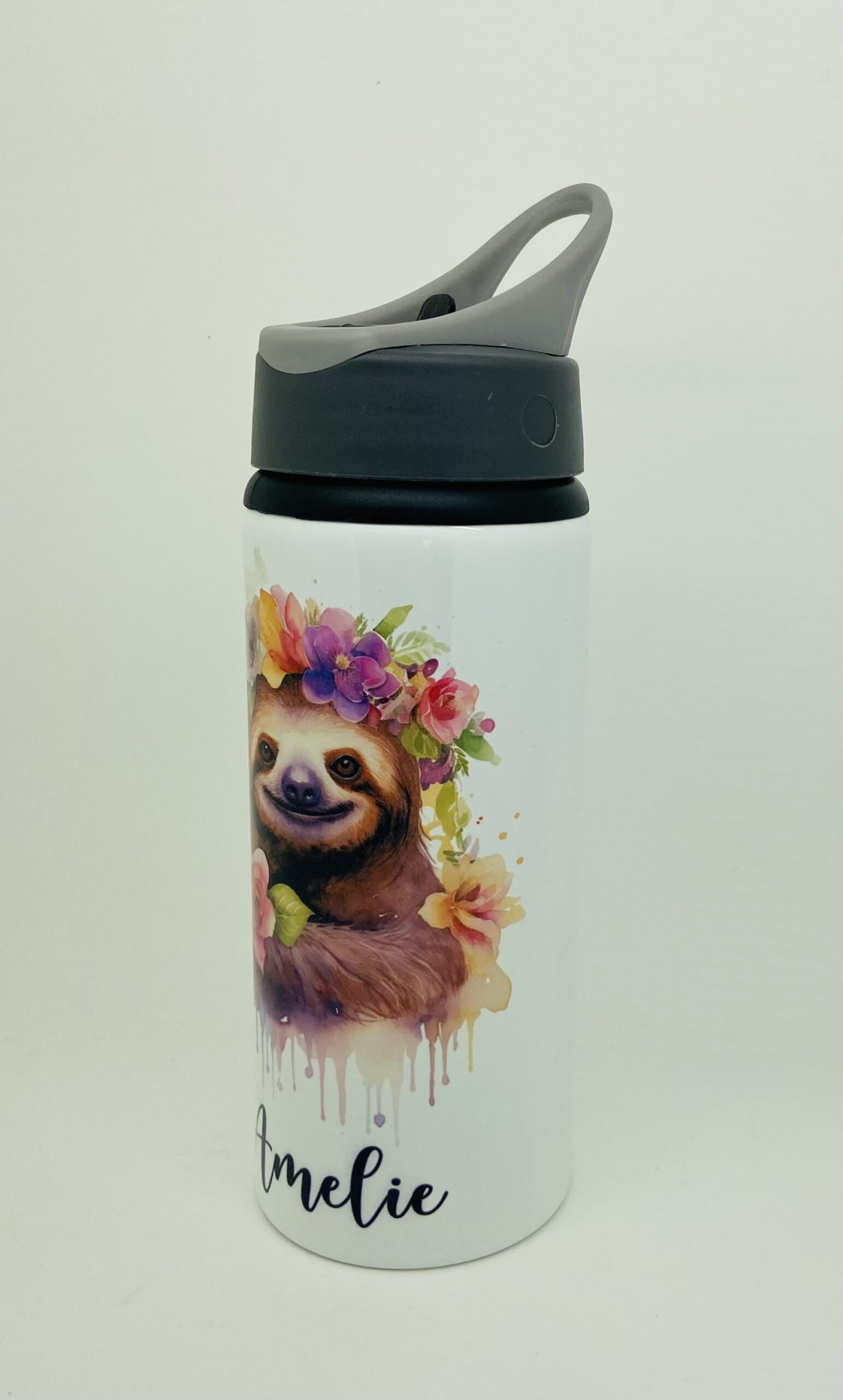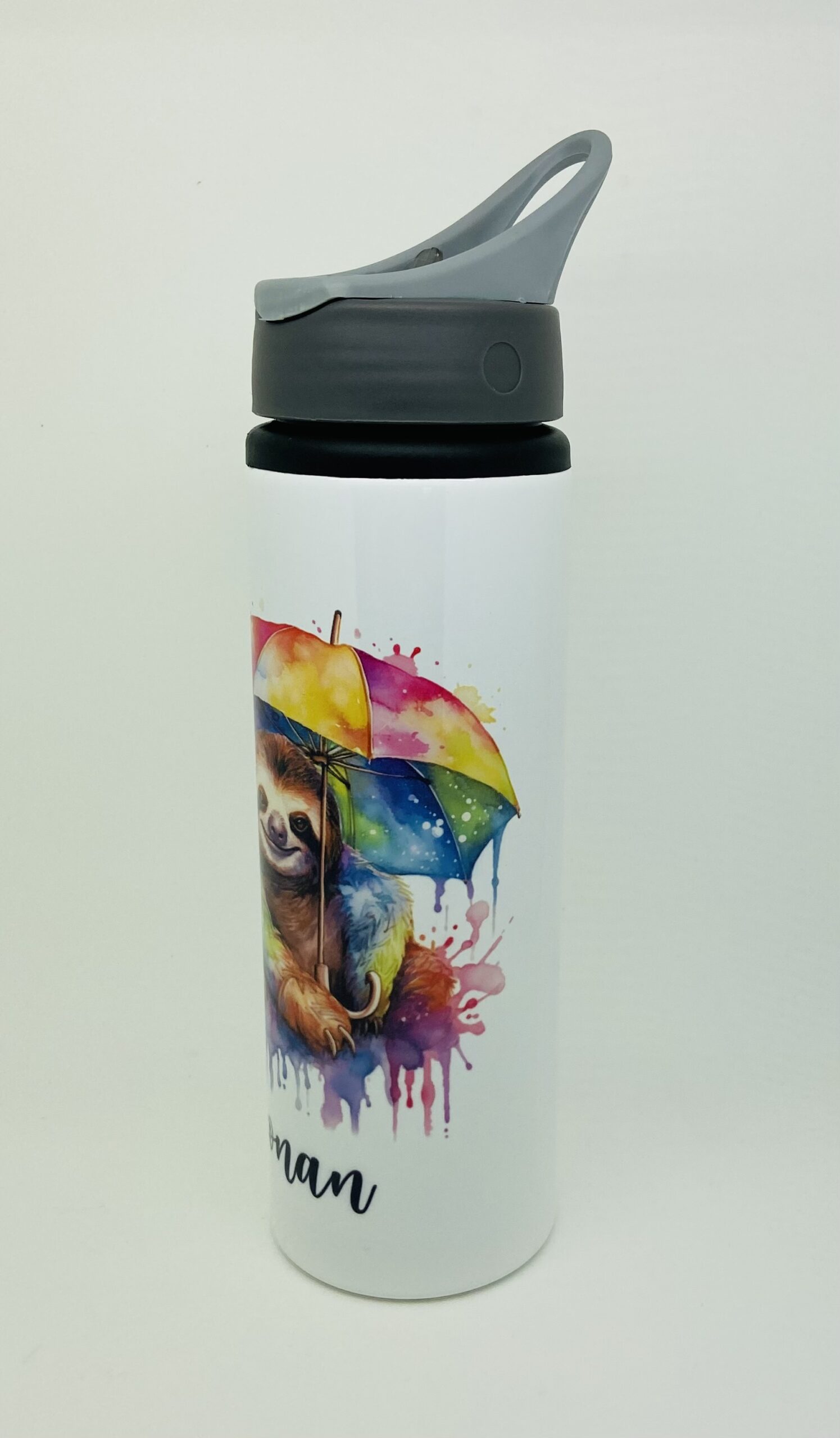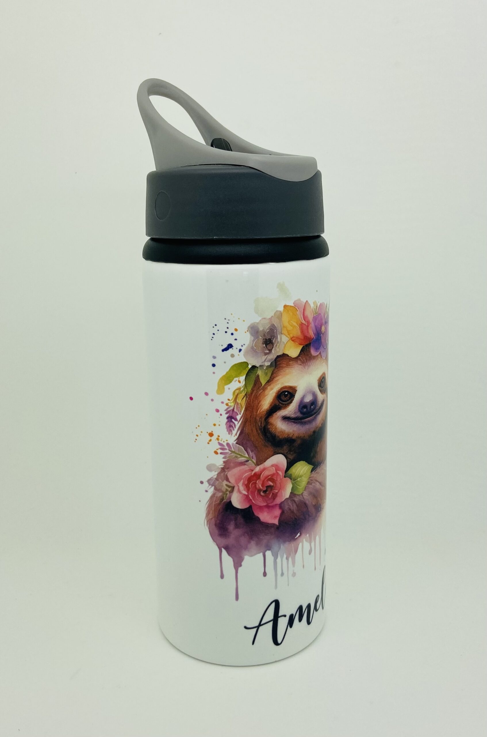Personalised Aluminium Cute Sloth In 2 Designs Water Bottle 600ml or 750ml.