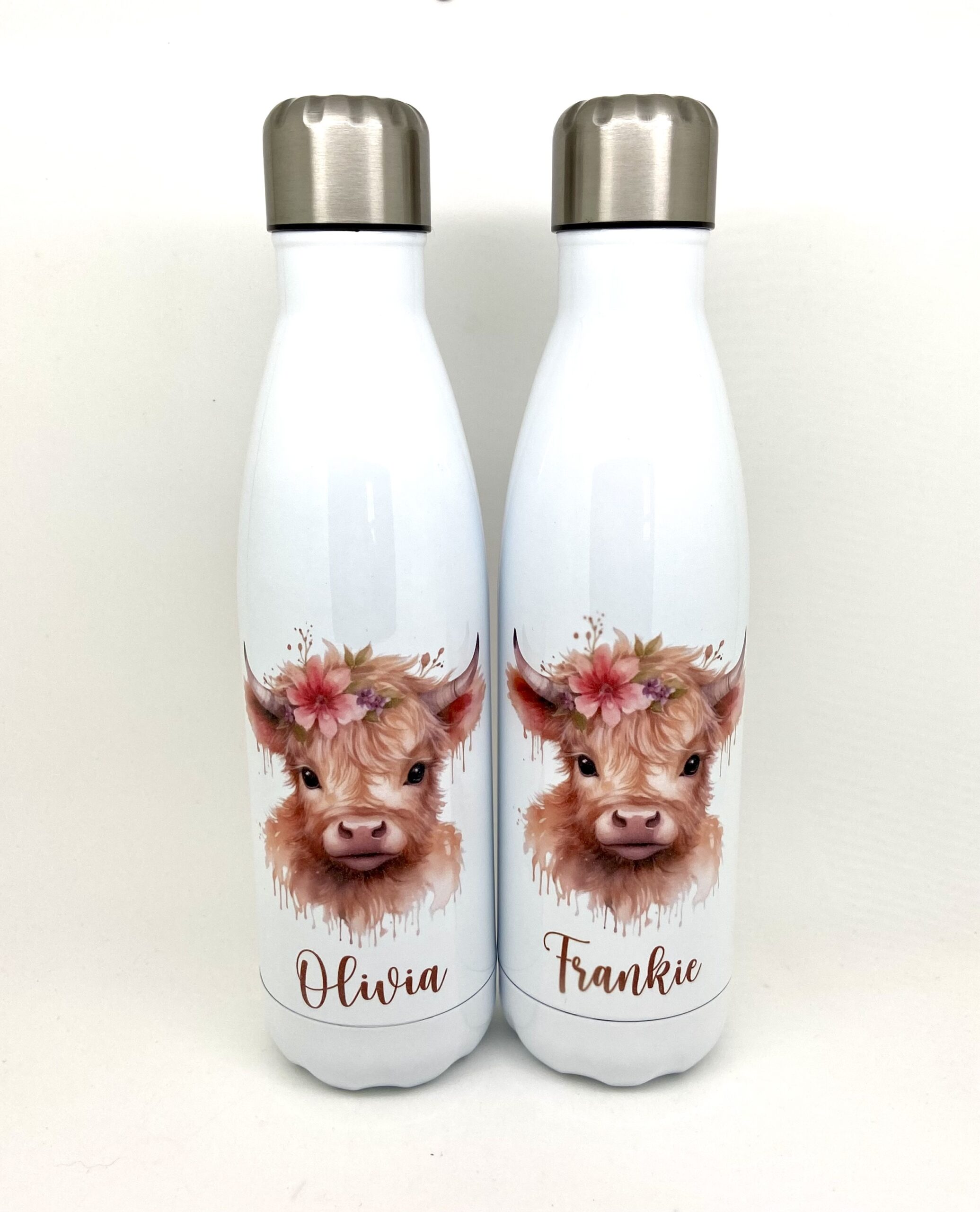 Cute Highland Cow Inspired Vacuum Bottles. Ideal Drinks Bottle for School or Any Other Activity.